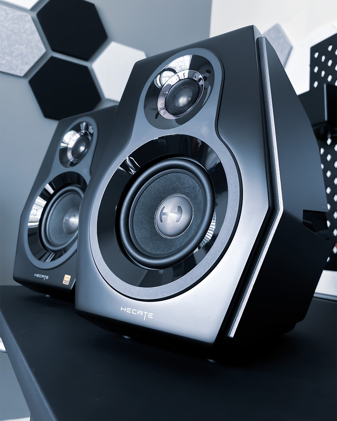 - Hand-crafted wooden cabinets with aluminum side panels for premium build and reduced resonance
