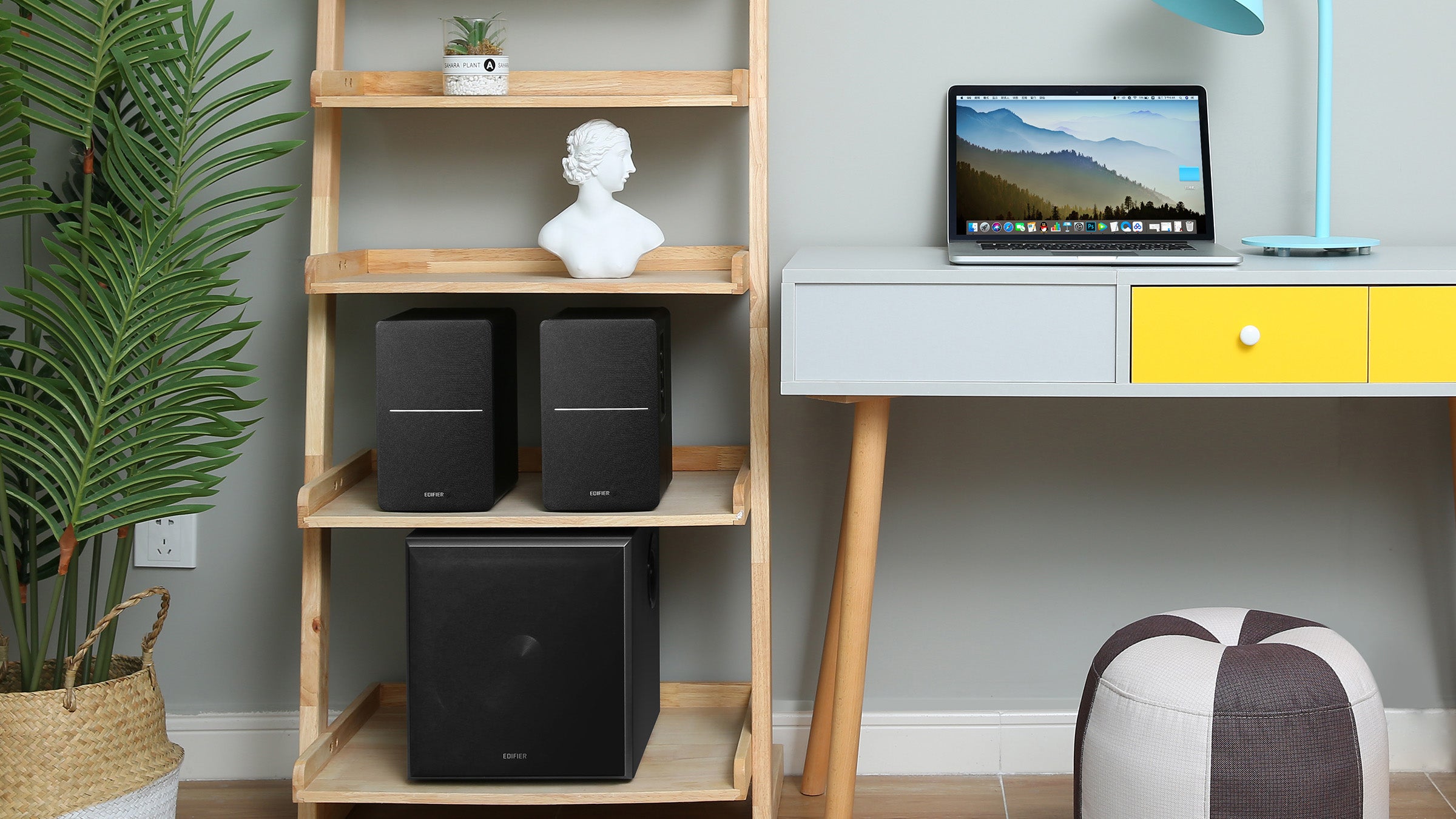 - 4" mid-bass + 0.5" silk tweeters deliver warm lows and crisp highs