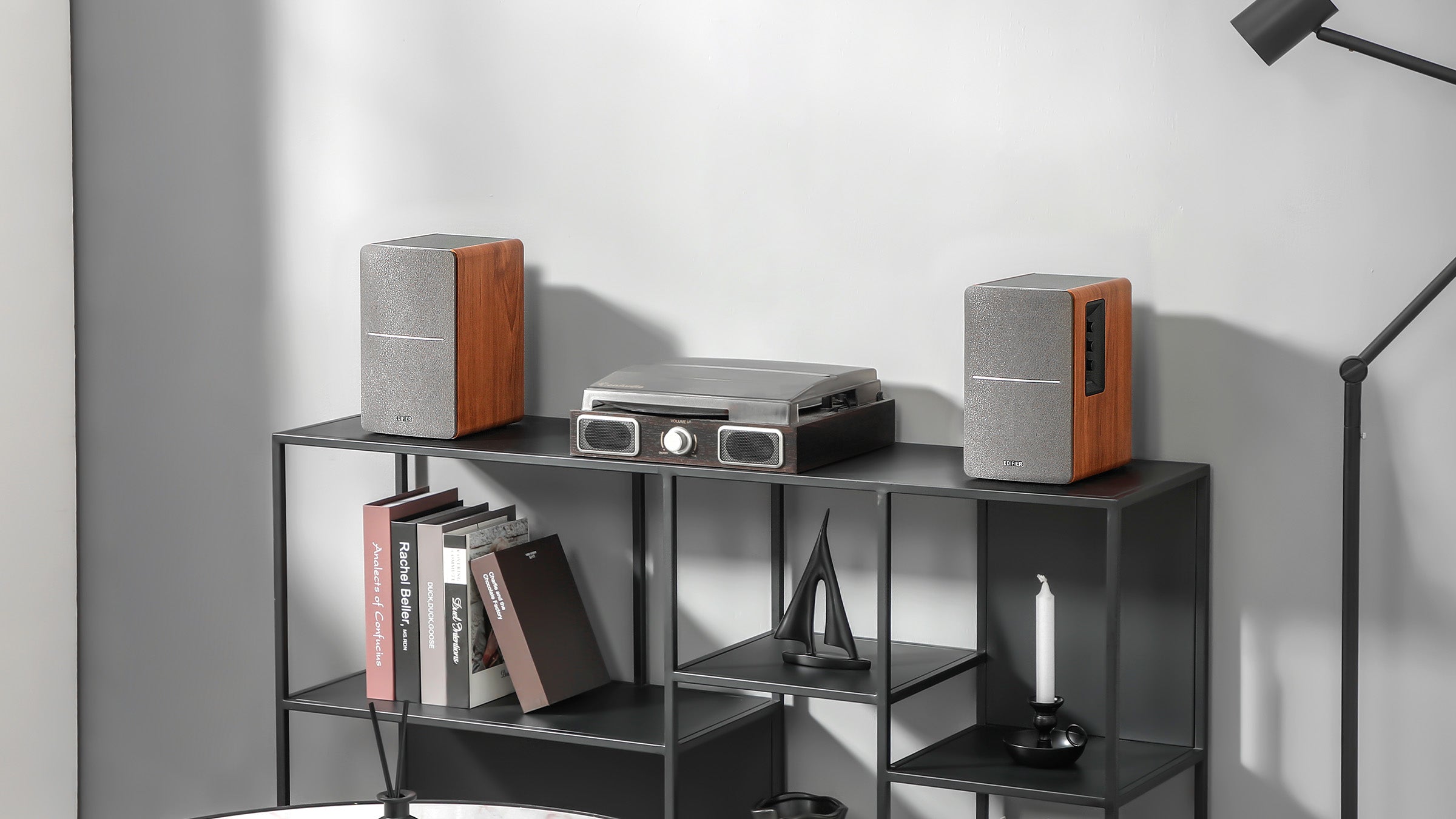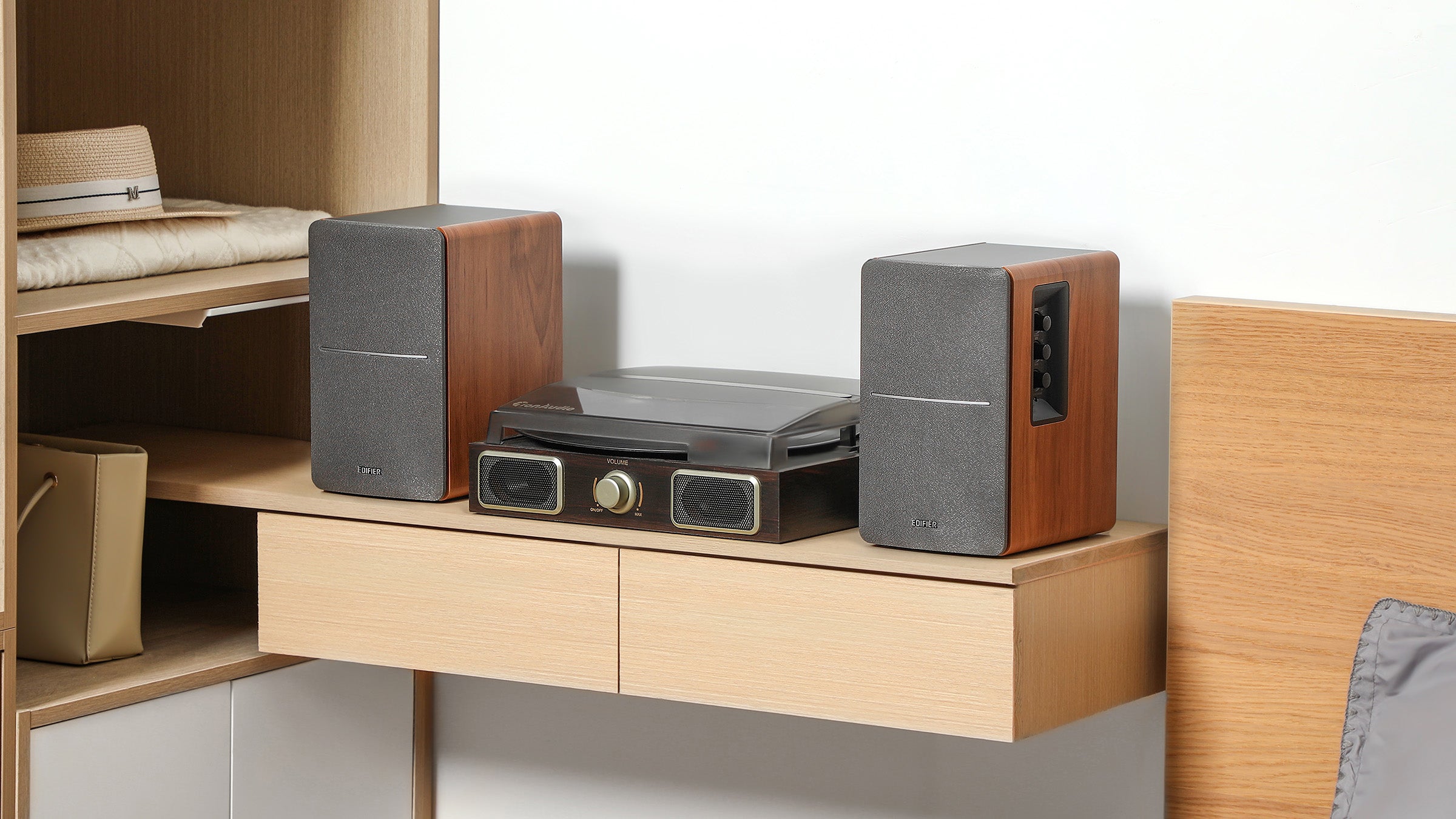 Place the speakers on a solid and stable plane, the height of which should be kept at a position parallel to the listener's ears, and the distance between the bass reflex hole and the wall should be at least 20-50cm. To get the most accurate sound and balance, the listener's best spot should be on the axis of the equilateral triangle formed by the left and right speakers. At the same time, you can adjust the angle of the speaker slightly to obtain a more ideal stereo effect